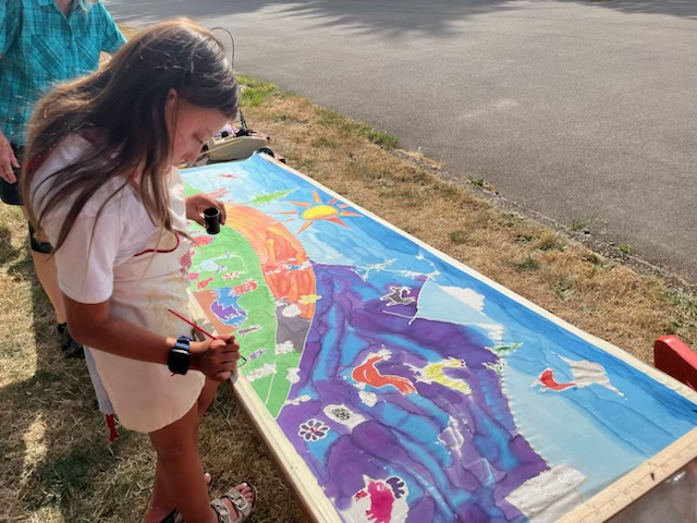 We made the big move from our home at Applegate Elementary School to the Crow Grange during the summer of 2024 to make room for classroom growth at the school. We enjoyed our first event in conjunction with the Crow Grange Chicken BBQ, with a community chicken-themed silk painting.