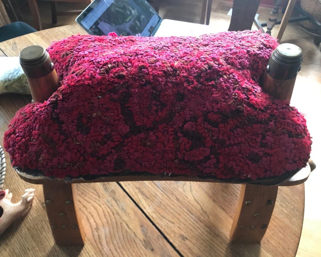Rug hooking sample – camel chair